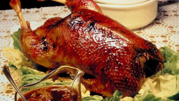 900g Pečená svatomartinská husa s jablky podávaná s červeným, bílým zelím